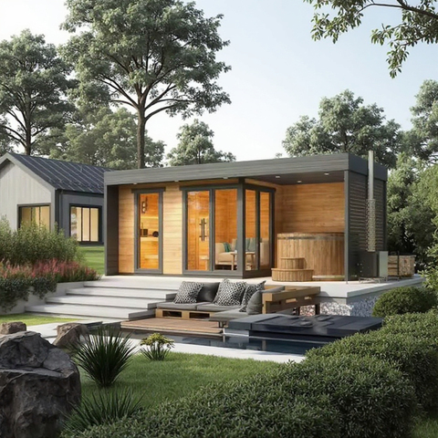 2025 Sauna all'aperto moderna in legno di cedro rosso per 4 persone Sauna a vapore umido e secco